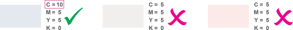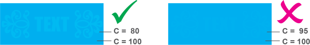 c. Light coloured text on a white background d. Reverse printing (White text on coloured background made up of a combination of 2 or more CMYK Colour Value).