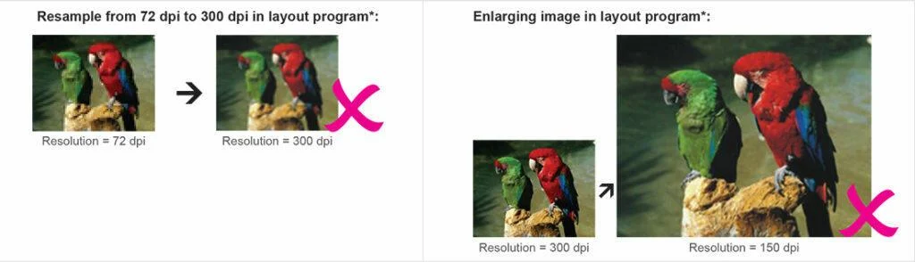 - DO NOT manipulate your images using a layout program*. You are advised to manipulate your images using Adobe Photoshop. Resolution and size (dimension) are inversely proportional to each other, which means when you are enlarging the image in layout program, you are in fact lowering the resolution.