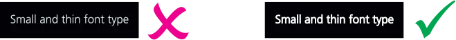 b. White text on a coloured or black backgroundc. Light coloured text on a white background d. Reverse printing (White text on coloured background made up of a combination of 2 or more CMYK Colour Value).
